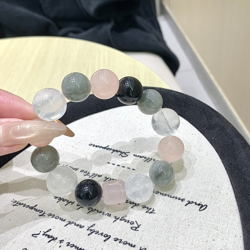 Natural Rose Quartz Jewelry Bracelet Niche Design Pink Quartz Bracelet Fashionable Women's Style Natural Multi-Gemstone Crystal Bracelet -