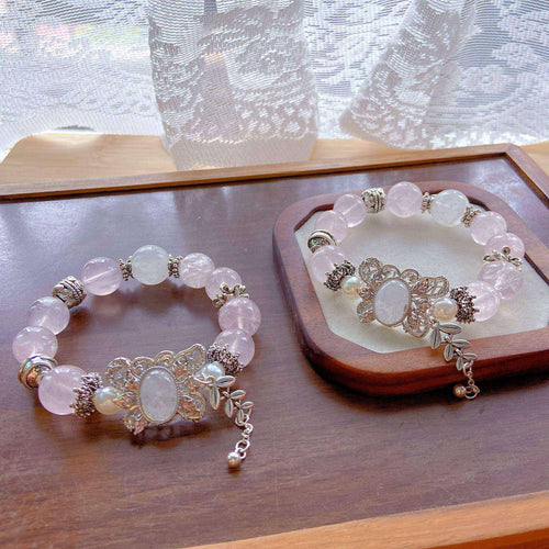 Mengzi Yi Same Style Crystal Bracelet Natural White Crystal and Cherry Blossom Agate Matching Hot-Selling Bracelet Crystal Bracelet -